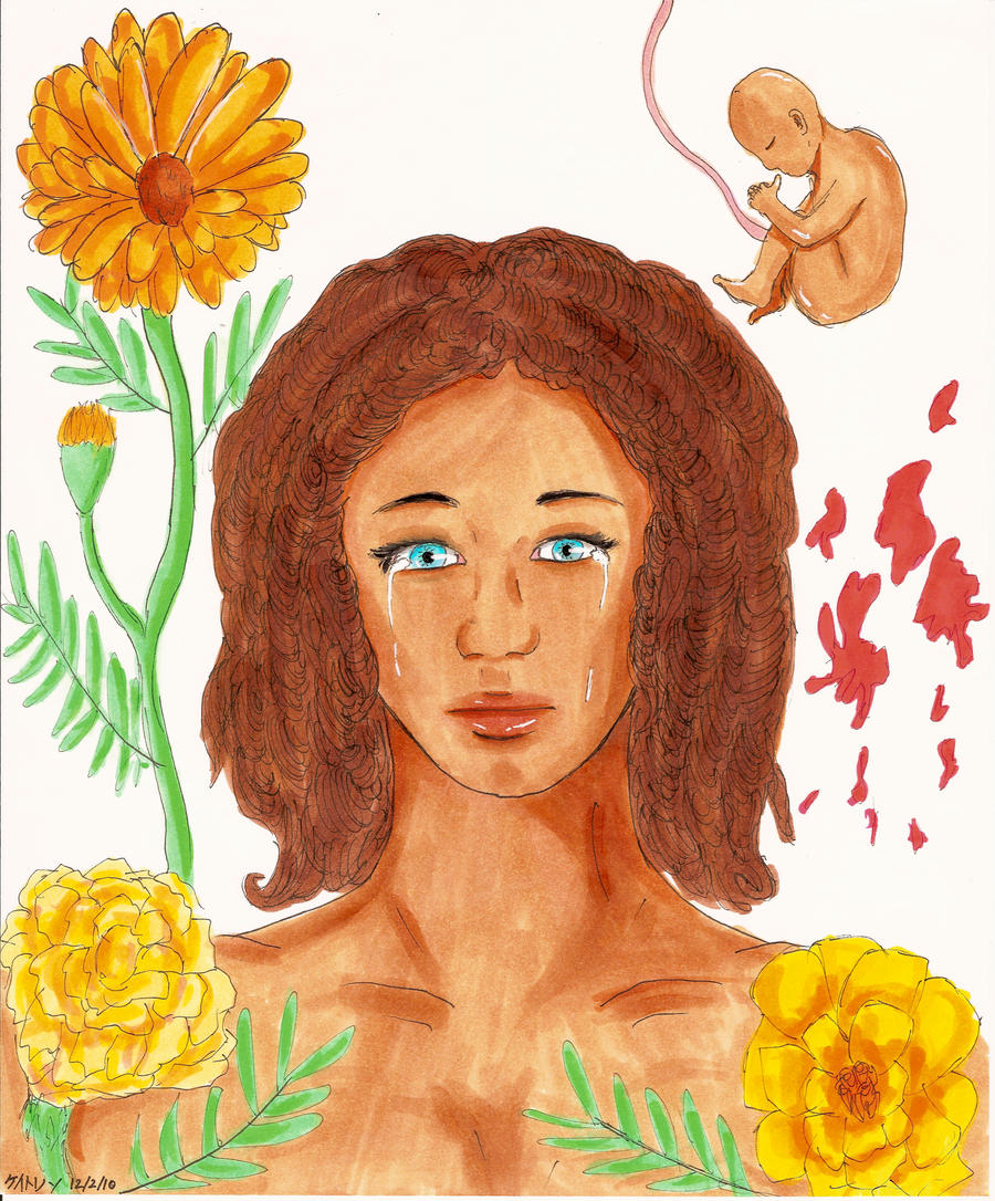 Ultimately in the end, Pecola gets raped by her father. Pecola’s mother? Oh yeah, she doesn’t believe her. Pecola then becomes pregnant with her father’s child. Everyone in the town knows about it, as they wish that the child dies. Everyone except Claudia and Frieda. They pray that child lives and they spend the somer planting marigold seeds in the hopes that if the flowers blossom, the child will survive. In the end, Peecola’s child dies, and Pecola begins to lose her mind as she’s looking into a mirror, talking about her blue eyes, and searching through the garbage.