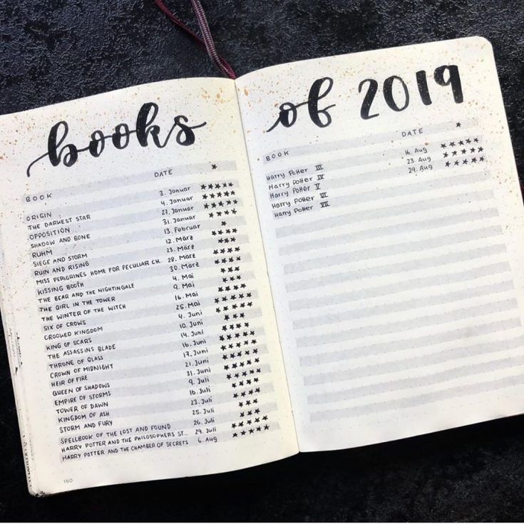 This bullet journal spread is great for a more detailed list of the books read. You could keep track of the books that you read along with a list of your impressions of the book.